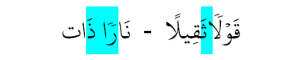 Tanwin tidak sejajar dan huruf diarahkan ke huruf di depannya.